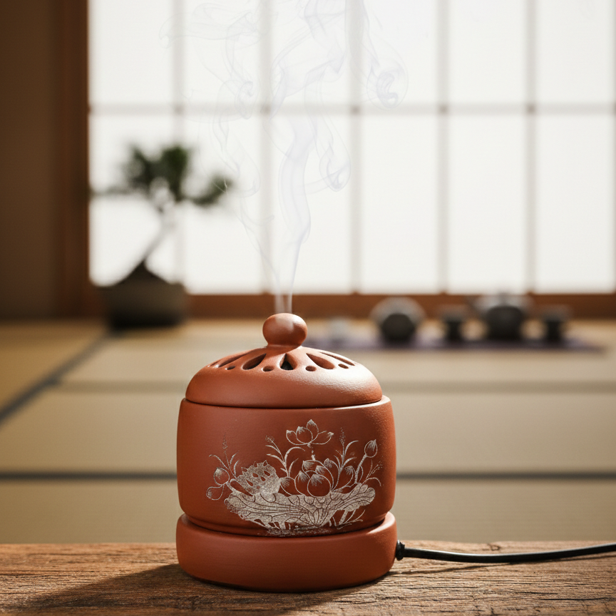 Cơ chế: Gia nhiệt điện ổn định, an toàn, giúp hương trầm sạch – trầm vi sinh lan tỏa đều và nhẹ